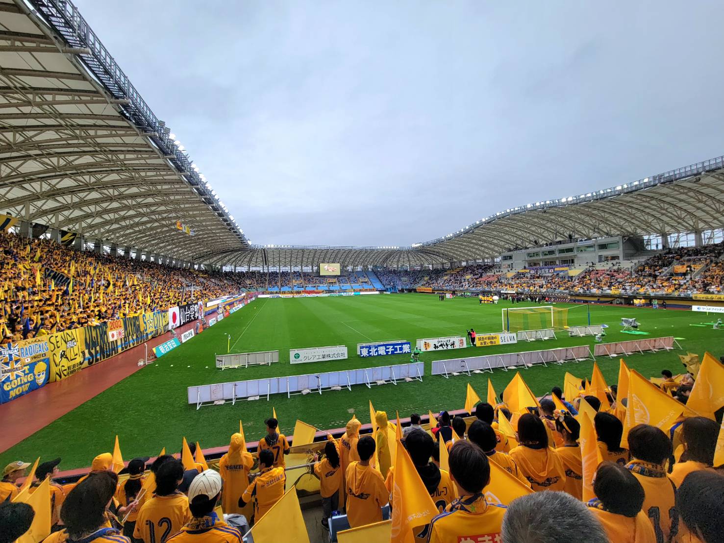 すると仙台に待望のゴールが生まれ、次いで追加点、宮崎選手の果敢なシュートで追い付く。